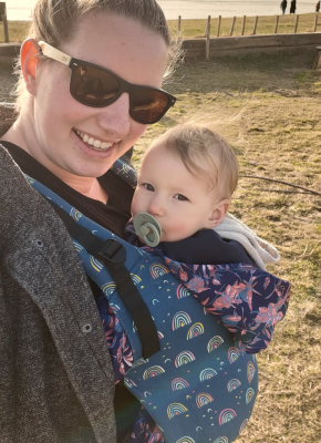 When our eldest daughter was a few weeks old, I booked an appointment with a baby carrier consultant. A whole new world opened up for me; your baby or child close to you and yet your hands free. My collection is now, four children and many hours of carrying later, quite large and my baby carriers are regularly used by friends, acquaintances and clients.